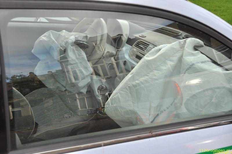 Ter plaatse was de weg geblokkeert. De brandweer hoefde niet te knippen, maar verzorgde wel kort de twee baby`s.