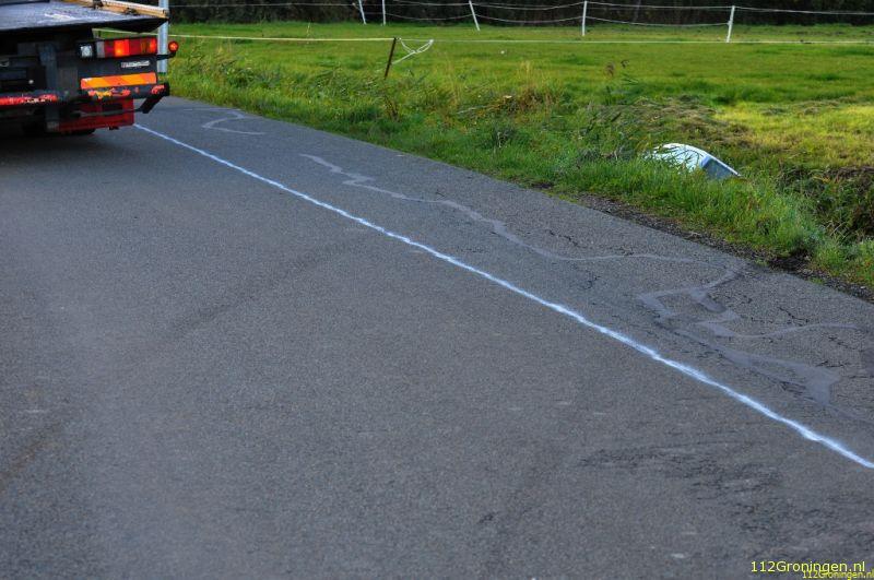 Appingedam/Wirdum - Op de Stadsweg tussen Appingedam en Wirdum heeft een automobilist donderdagavond een nat pak gehaald.