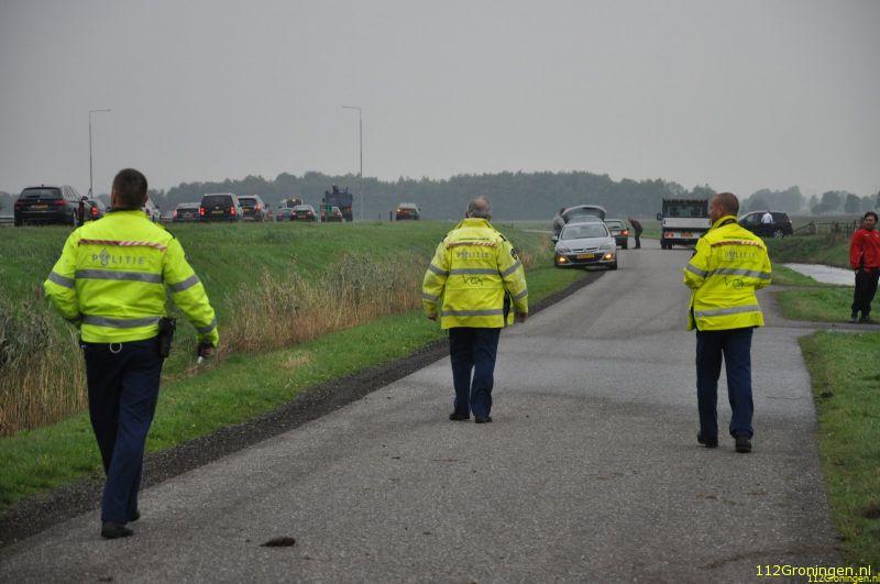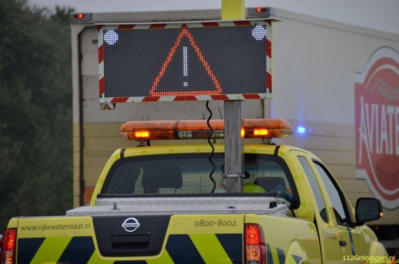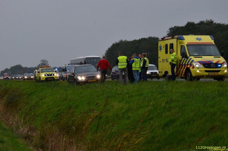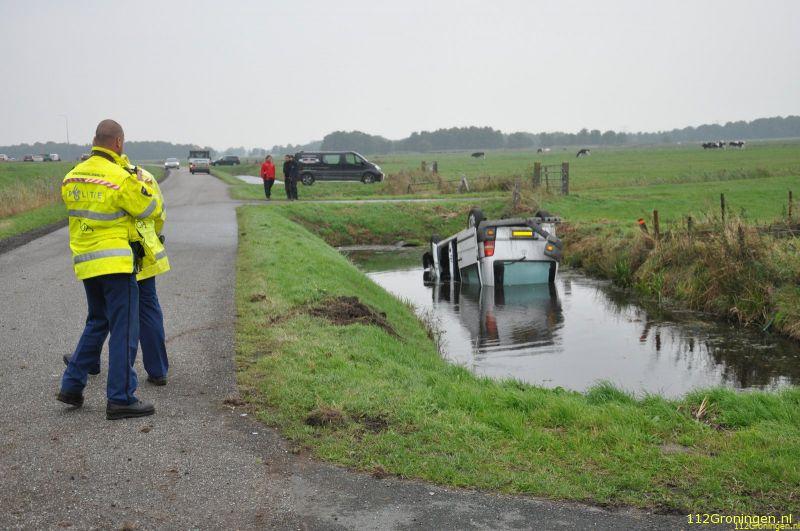 Leek - Een 65-jarige automobilist uit Kolham is vrijdagmiddag langs de A7 bij Leek met zijn auto op de kop in de sloot beland.