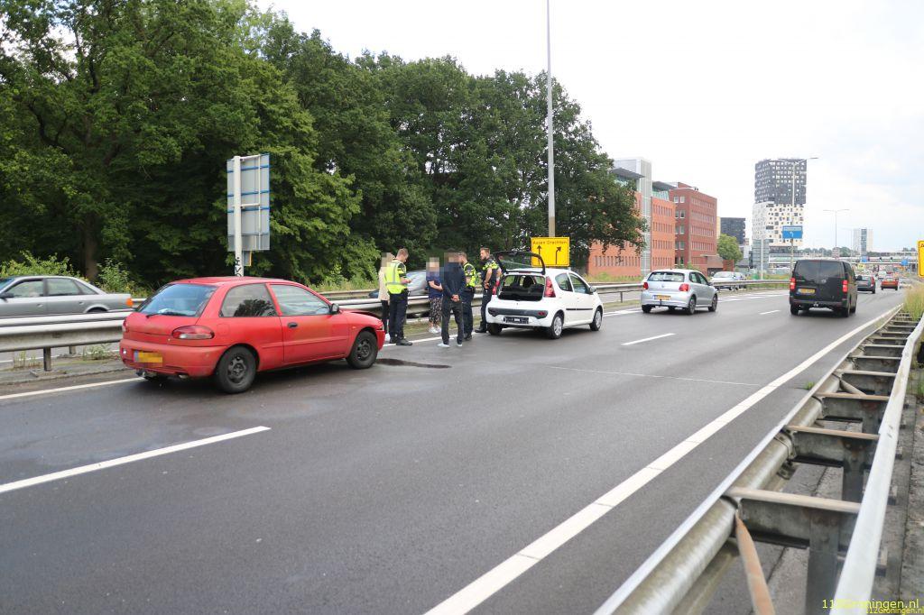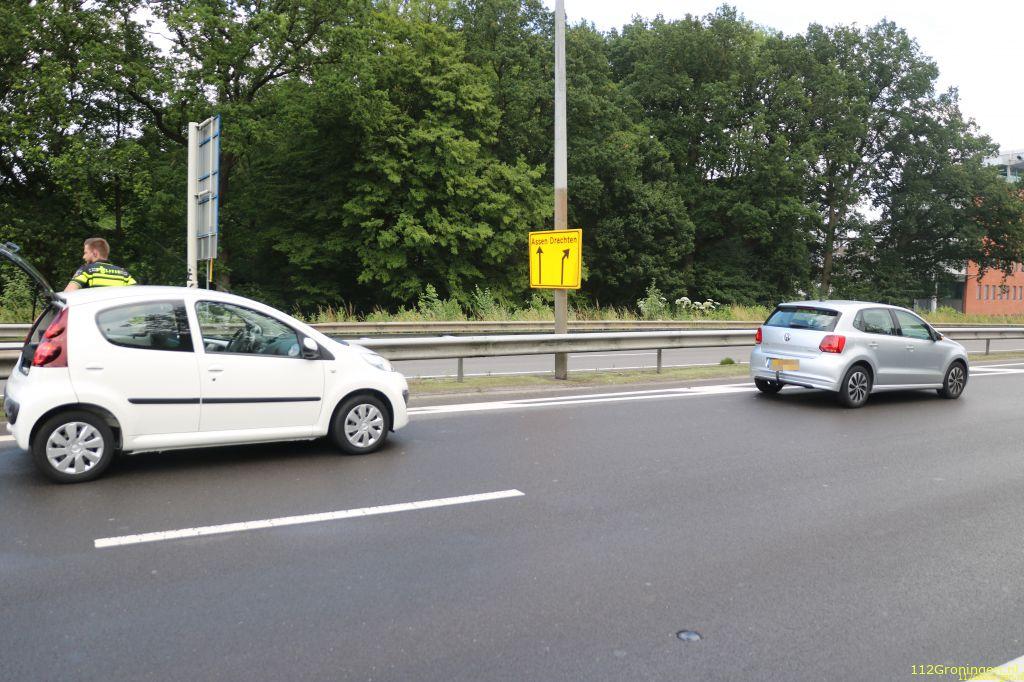 Groningen - Op de N370 vanaf het Hoendiep in de richting Vrijheidsplein heeft een kop/staart aanrijding plaatsgevonden tussen drie auto's.