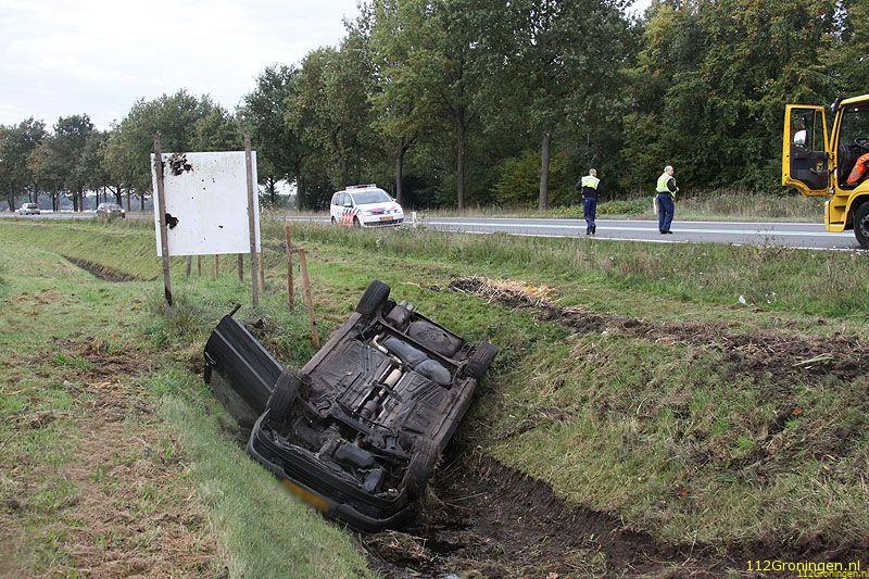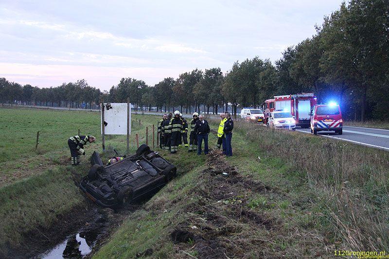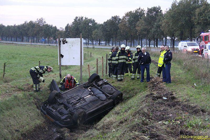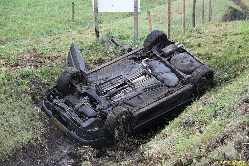 Bij aankomst van de hulpdiensten bleek dat er een auto op de kop in de sloot lag, de brandweer heeft de auto doorzocht op eventuele inzittenden maar die bleken er niet te zijn. De auto lag waarschijnlijk al een tijdje in de sloot omdat die al volledig was afgekoeld. De politie gaat onderzoek doen naar de bestuurder van de naar alcohol ruikende auto. Een bergingsbedrijf heeft de auto uit de sloot getrokken en afgevoerd.