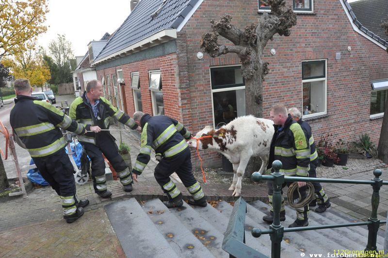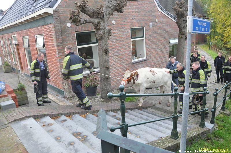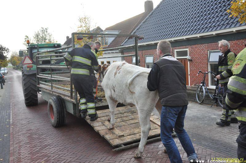 Niezijl - De Grijpskerker brandweer werd maandagmorgen ingezet in Niezijl om een koe uit het Niezijlsterdiep te halen.