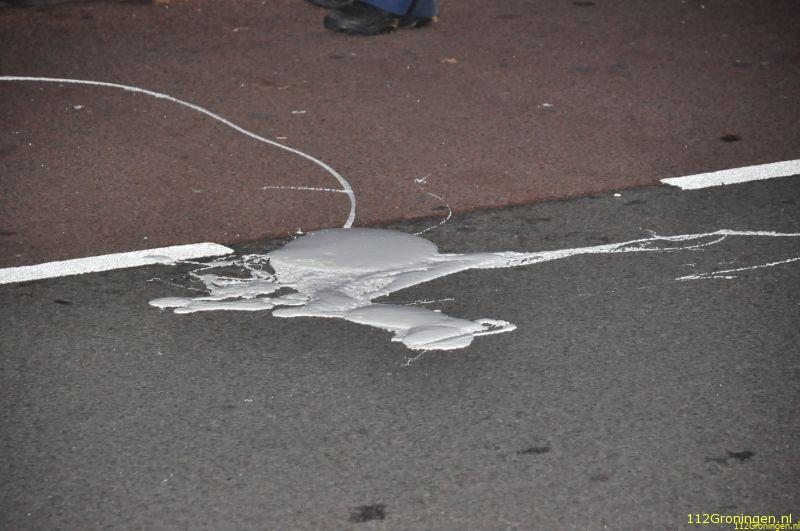 Bij de val, viel ook een pot verf die de fietsster vast had op de grond. De automobilist raakte niet gewond en kon zijn weg vervolgen, de fietsster werd ter controle naar het ziekenhuis gebracht.