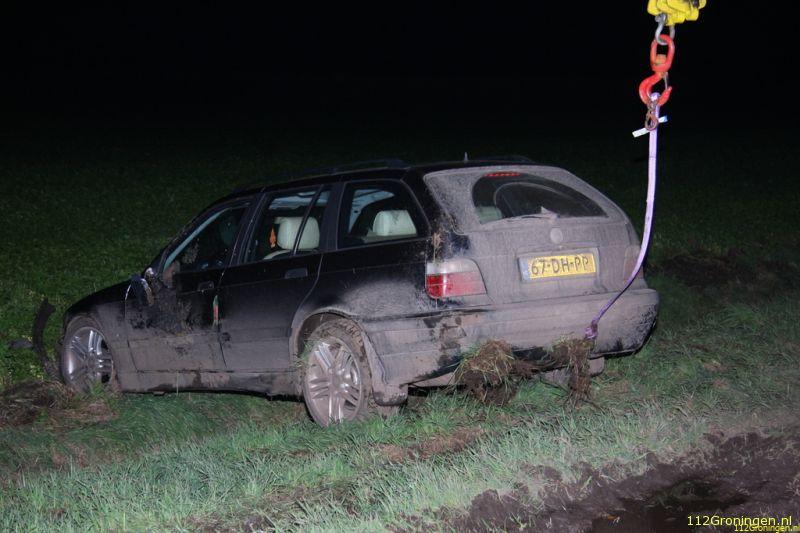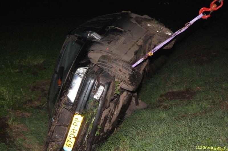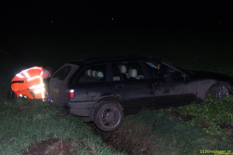 Muntendam - Op de Eendrachtsweg in Muntendam is zaterdag rond 23.00 uur een auto van de weg geraakt en over de sloot gevlogen.
