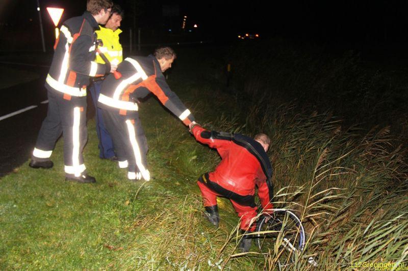 De tankautospuit van brandweer Finsterwolde liep alle sloten na in de richting van Winschoten. Hierop werd in een sloot aan de Ekamperweg een persoon met fiets aangetroffen door de brandweer.