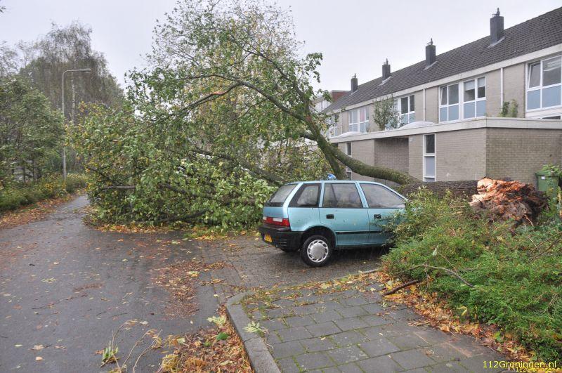 Op de Kalmarweg vloog een muur spontaan om. Bij Dukdalf vloog een boom op een auto. Bij de Friesestraatweg viel een boom om, die raakte een waterleiding en een gasleiding. Er was eerste sprake van dat er een kind onder lag.