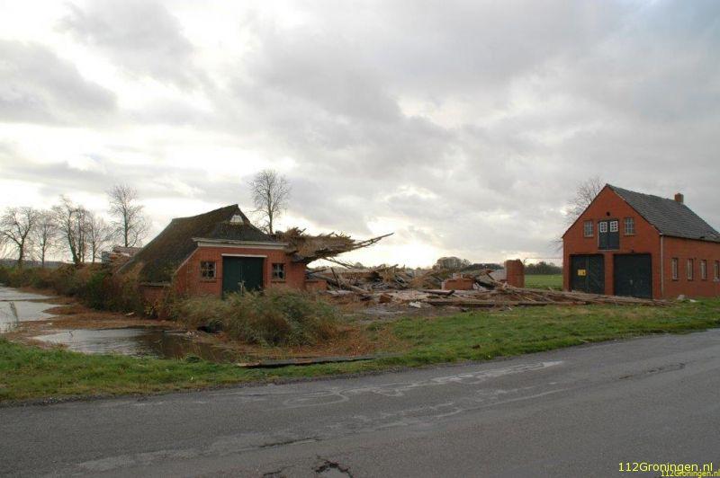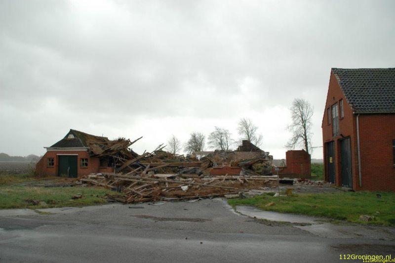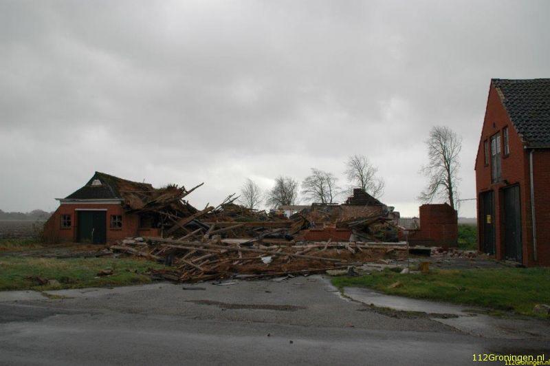 Regio - Tijdens de zware storm is een grote schuur bij Rixona tussen warffum en den andel ingestort.