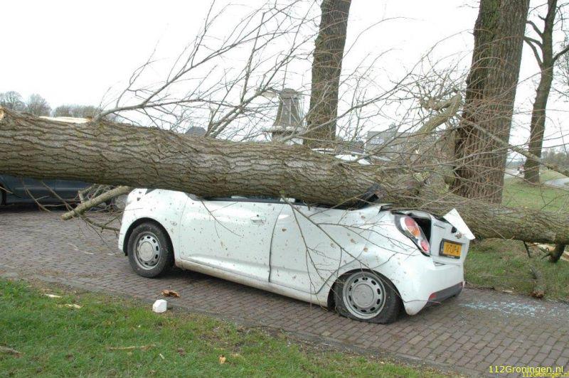 De schuur stond al op de nominatie gesloot te worden. Persoonlijk ongelukken deden zich niet voor. Ook bij Sauwerd ging het goed tekeer en hier braken de bomen als luciferhoutjes. een auto die de N361 op zou rijden werd door een grote tak geraakt. De bestuurder/ster heeft erg veel geluk gehad dat die tak op de achterzijde erecht kwam. De auto is rijp voor de sloop.