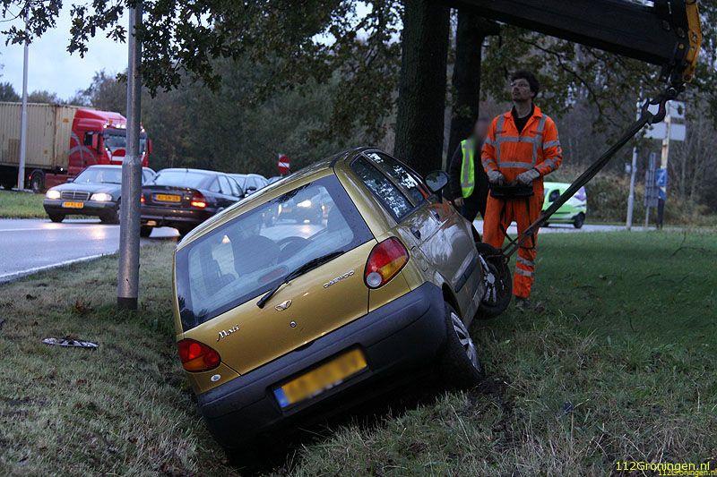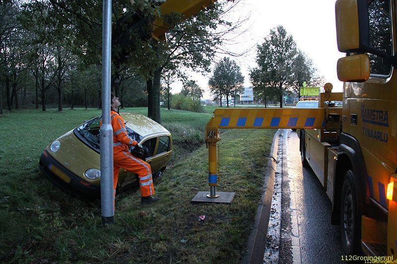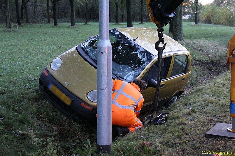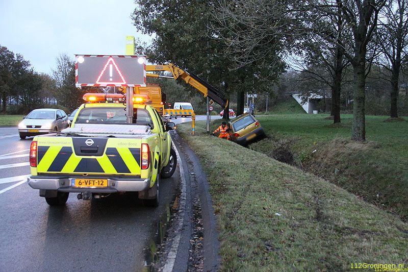 De bestuurder raakte niet gewond. Een bergingsbedrijf heeft de auto uit de greppel gehaald en geborgen.