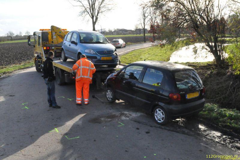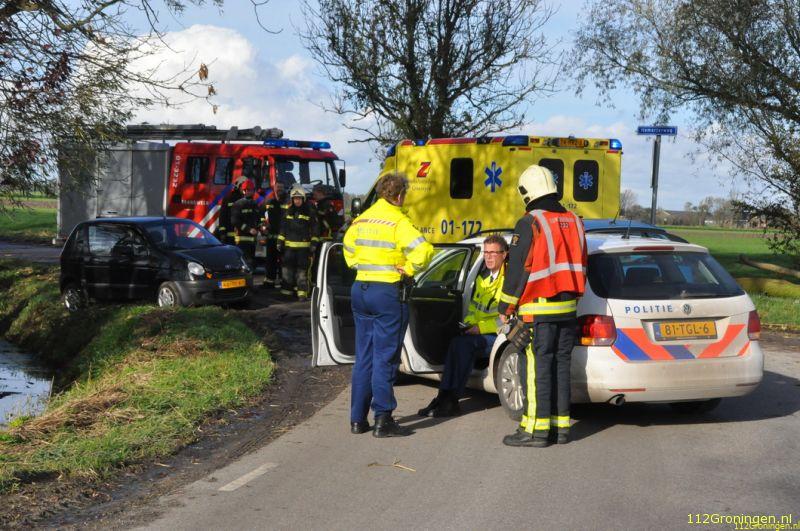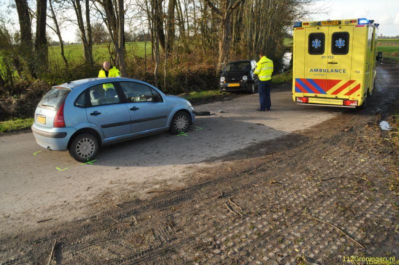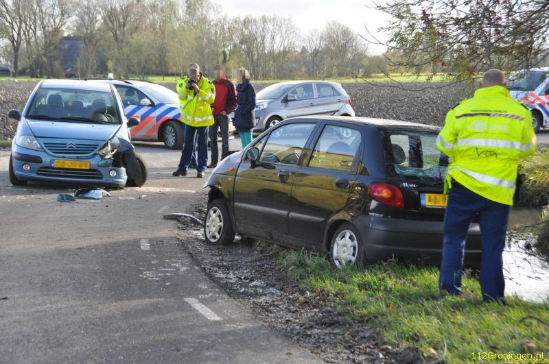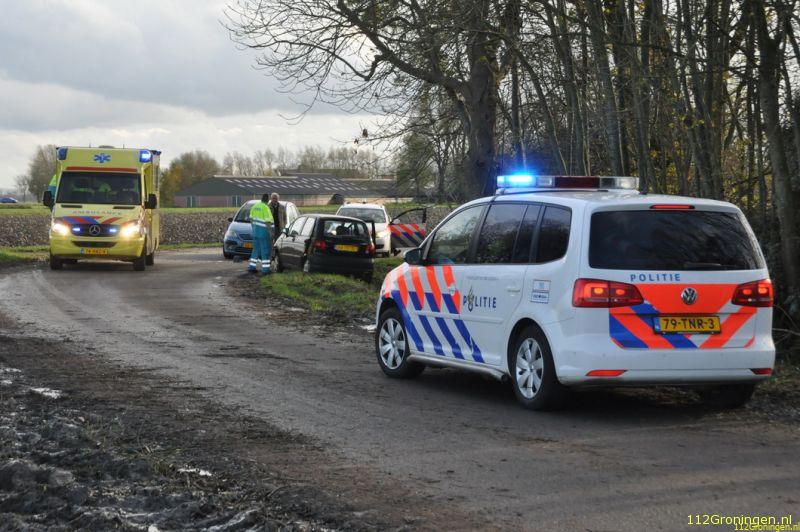 In een bocht zijn twee voertuigen met elkaar in aanraking gekomen. De slachtoffers konden zelfstandig, of met een beetje hulp hun voertuig verlaten. Brandweer Loppersum kon onverrichter zake huiswaarts. De slachtoffers zijn door de ambulancedienst gecontroleerd op verwondingen. Eén van de drie slachtoffers is uit voorzorg overgebracht naar een ziekenhuis. Berger Dallinga heeft beide voertuigen afgesleept.