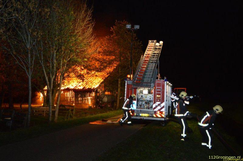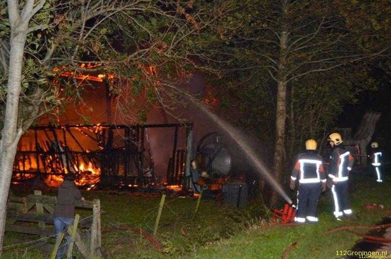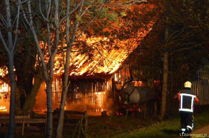 Nieuwe Pekela - In de nacht van maandag op dinsdag is in Nieuwe Pekela een boerenschuur volledig in vlammen op gegaan.