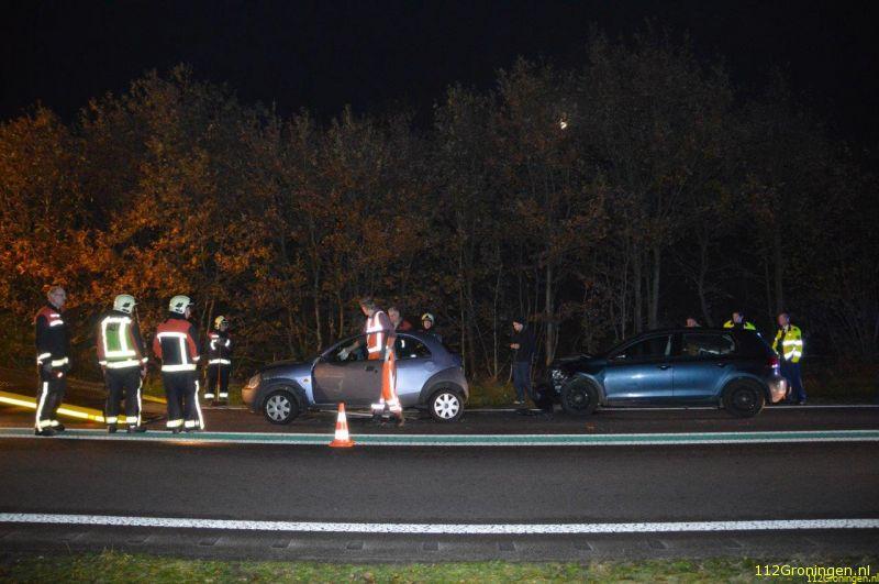 Vermoedelijk had een achteropkomende automobilist(e) niet gezien dat er plotseling geremd werd waardoor er een kop-staart aanrijding ontstond. Eén persoon raakte licht gewond en is voor controle naar het ziekenhuis gebracht. Alle andere inzittende hebben geen verwondingen opgelopen. De brandweer heeft het wegdek waar enige vloeistoffen uit de auto’s op was gelekt gereinigd. Het verkeer dat over de N34 kwam heeft enige hinder van het ongeval ondervonden. Rond tien voor zes werd de weg weer vrij gegeven.