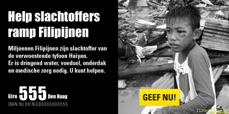 Maandag 18 november, is de dag van de nationale hulpactie voor de slachtoffers van orkaan Haiyan in de Filipijnen. Vandaag is de landelijke actie, ook op tv. Geeft u ook.