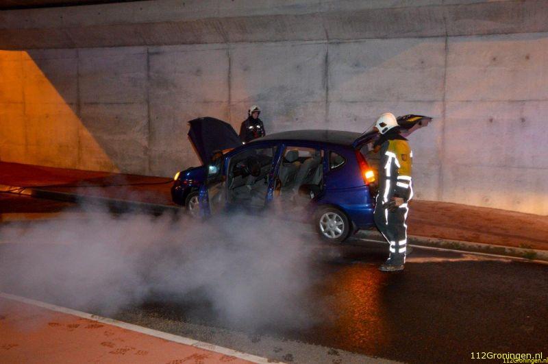 De brandweer heeft de auto met een warmtebeeldcamera gecontroleerd en afgeblust. Wat de exacte oorzaak is van de vonken is niet bekend. Bergingsbedrijf Willem Keizer heeft de auto afgesleept.
