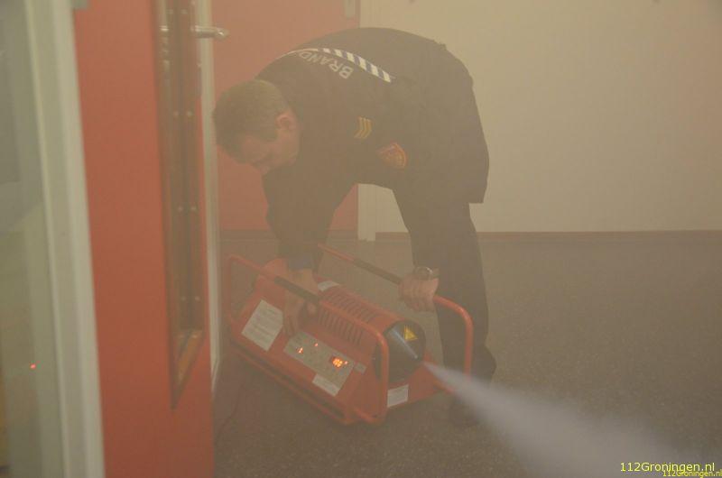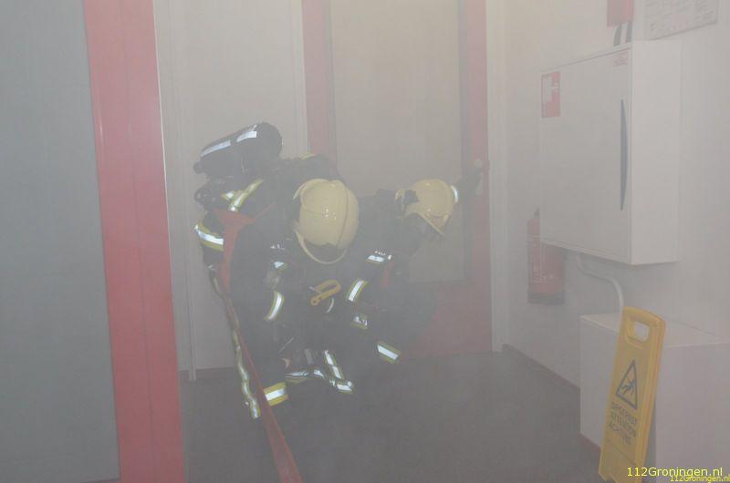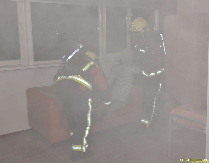 Bij aankomst van de Leekster brandweer stonden alle bewoners reeds op de verzamelplaats, maar er werden nog bewoners vermist. Na een snelle verkenning rondom het pand, werd er rook waargenomen op de 2e verdieping. De aanvalsploegen troffen een brandhaard en een slachtoffer aan in een slaapkamer. Nadat alle vertrekken uitgekamd waren, waren er helaas 4 slachtoffers te betreuren. Gelukkig voor de bewoners betrof dit vanavond een oefening. Het doel was om de BHV organisatie en de brandweer bekend te laten worden met het gebouw en de procedures. De brandweer en de BHV kan terugkijken op een geslaagde oefening.
