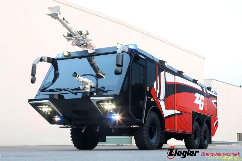 Ziegler historie met een bluscapaciteit van 10.000 liter per minuut. Dit schuimblusvoertuig is uniek