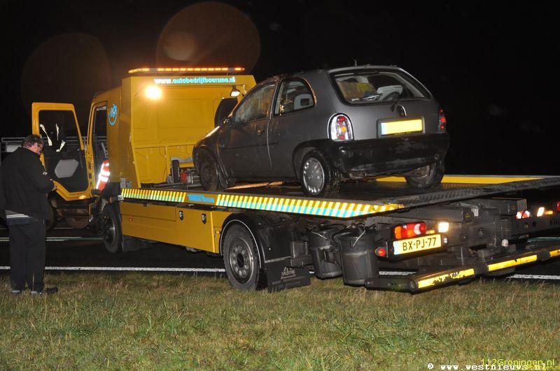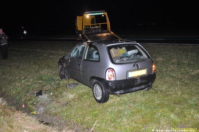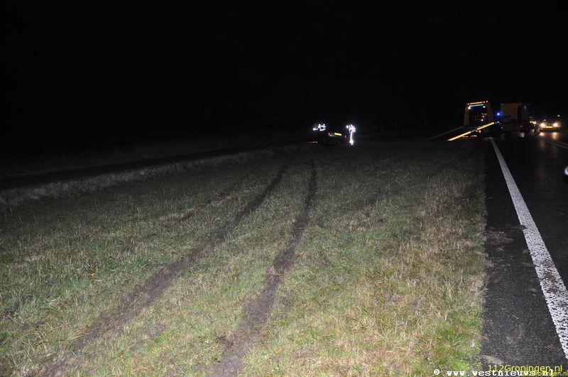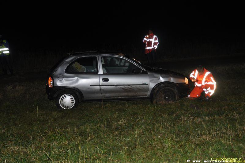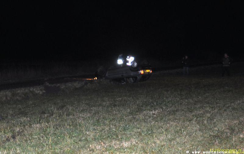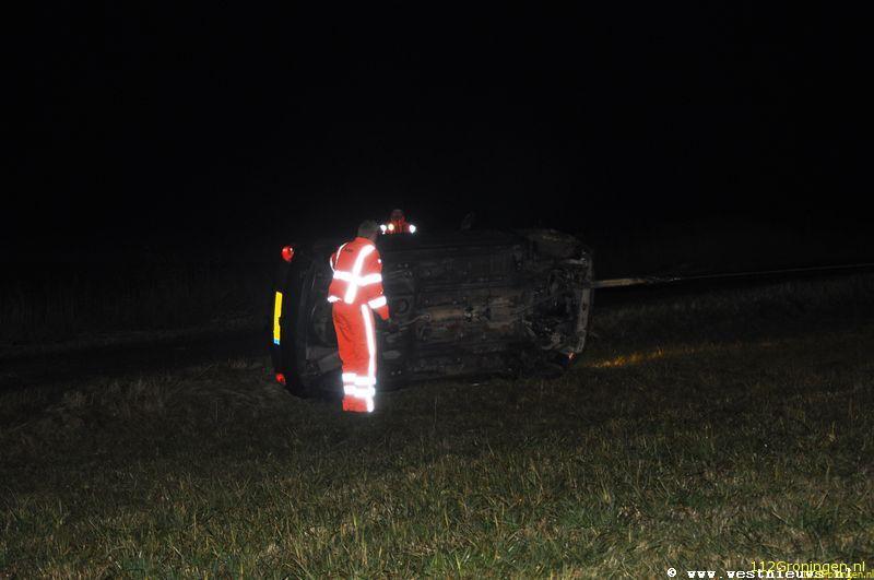 De automobilist, woonachtig in Stiens, reed richting Lauwersoog waar de auto door nog onbekende oorzaak van de weg raakte. In de berm sloeg de auto in een greppel over de kop. De brandweer en een ambulance gingen met spoed ter plaatse, maar dit bleek overbodig. De jongeman was reeds uit de auto en bleek geen letsel te hebben opgelopen. De auto raakte totaal vernield en moest worden afgesleept.