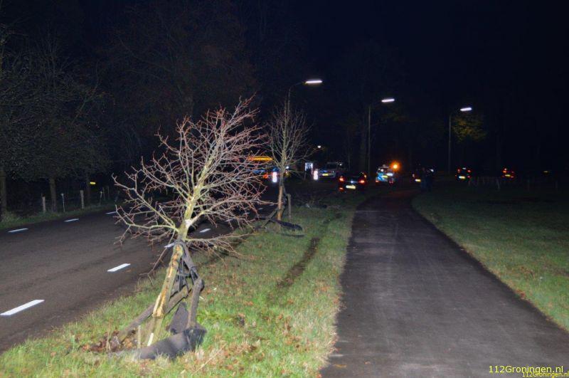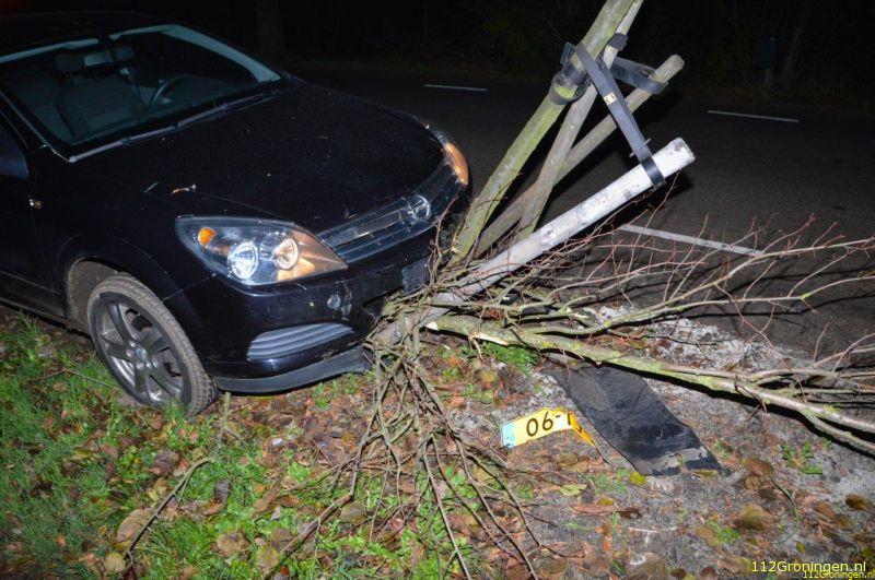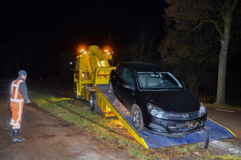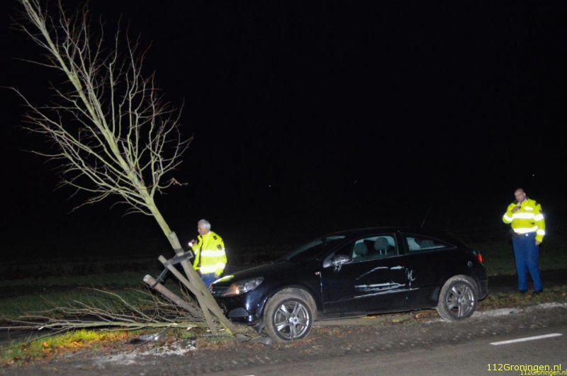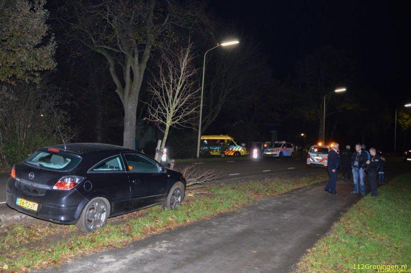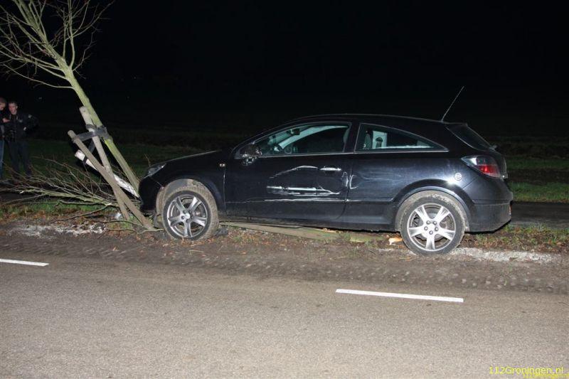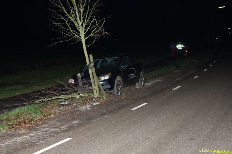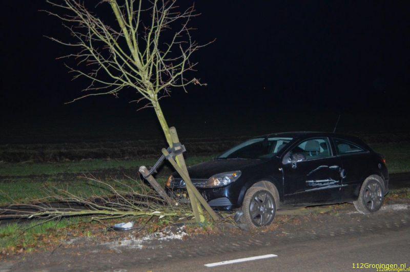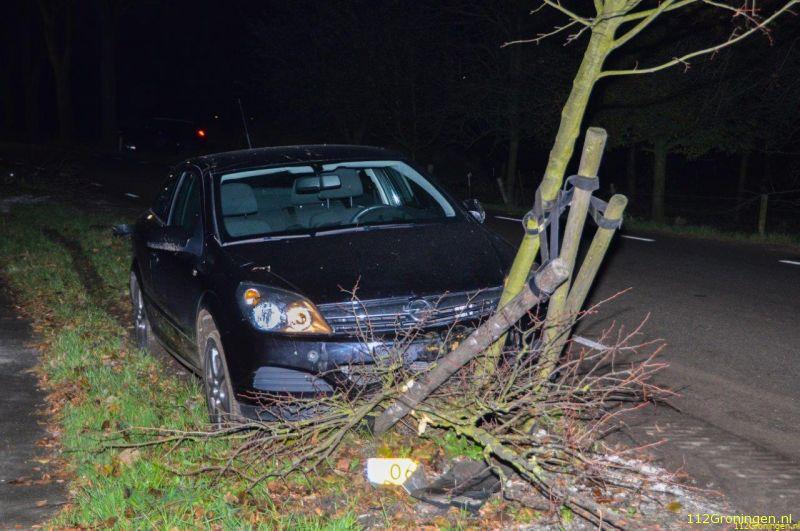 Onstwedde - Vrijdagavond is een auto door nog onbekende oorzaak van de weg geraakt en tegen een boom tot stilstand gekomen.
