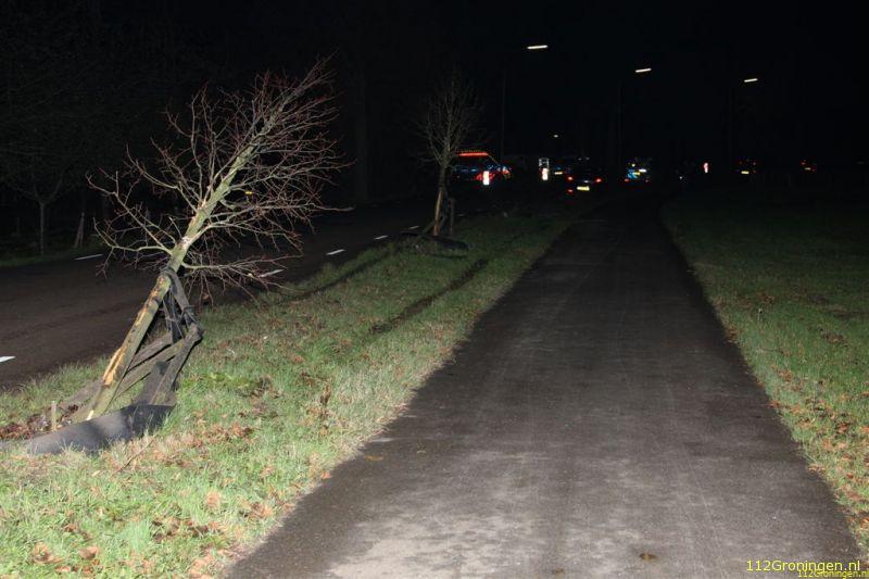 De auto schoot door de berm en reed daarbij over een pas geplante boom heen. Nadat hij een lantaarnpaal had geschampd, kwam hij via het fietspad opnieuw in de berm en reed daar nog vier bomen omver om vervolgens tegen de vijfde boom tot stilstand te komen. De bestuurder is met onbekende verwondingen naar het ziekenhuis gebracht. Bergingsbedrijf Willem Keizer heeft de auto afgesleept.