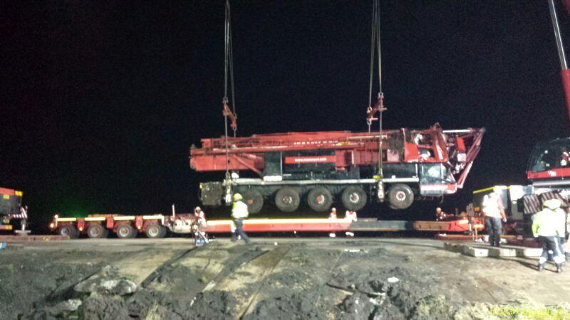 Mammoet kwam zelf met twee grote kranen en daarnaast was Poort aanwezig met twee vrachtwagens. Ook twee vrachtwagens van de firma Nieboer en H.H. van der Velde werden ingezet. Naast het vele materieel werden er ook veel mensen ingezet. Nadat de weg was beschermt met rijplaten e.d. konden de kranen worden opgesteld.