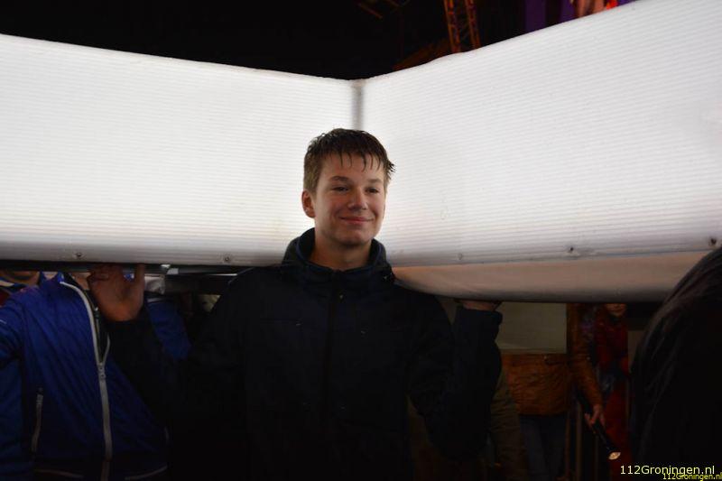 De brandweer heeft de boom in stukken gezaagd, zodat de weg weer vrij kwam voor het overige verkeer. De schade is groot.