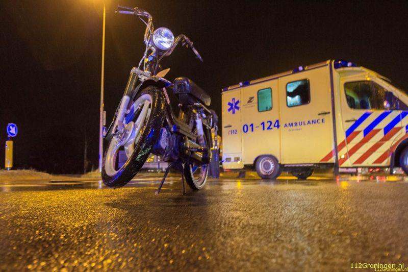 Een 38-jarige automobilist uit Slochteren verleende op de kruising van de Rijksweg met Oostersluisweg een 19-jarige bromfietser uit Groningen geen vorrang. De bromfietser raakte door de aanrijding aan zijn been gewond en is per ambulance overgebracht naar het UMCG.
