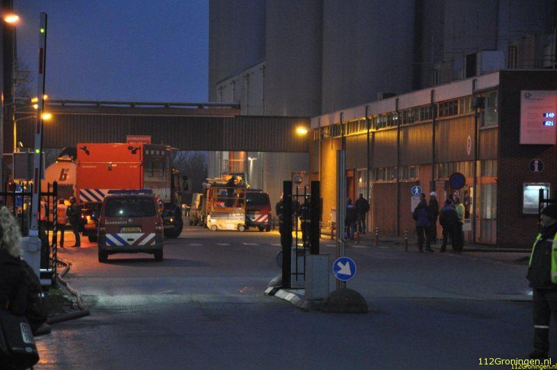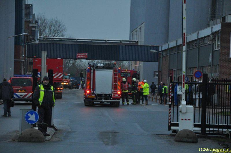 Ter plaatse is opgeschaald naar middelincident. Er was een lekkage waargenomen bij een voorraadtank met salpeterzuur t.h.v. van een mangat. Het bedrijf heeft de melding naar de brandweer gedaan omdat er damp t.g.v. de lekkage vrijkwam in de omgeving van de voorraadtank. Alle veiligheidsvoorzieningen hebben gewerkt en het bedrijf heeft volgens procedure gehandeld. Ter plaatse heeft brandweer Bedum opgeschaald en is de blusploeg uit Middelstum ter plaatse gekomen om de waterwinning vanaf het Boterdiep gereed te maken.