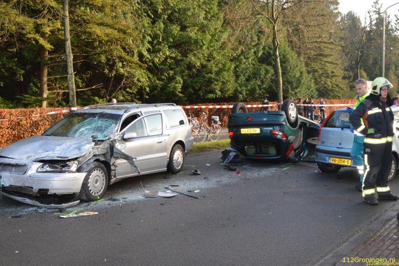 De vrouwelijke bestuurder had met haar auto op de kruising Rijksstraatweg met de Dilgtweg in Haren al een aanrijding gehad met een andere auto. Zij reed vervolgens door na de aanrijding zonder ter plekke haar identiteit achter te laten. Enkele honderden meters verderop (ter hoogte van de Hortus) botste de Harense tegen de linkerachterzijde van een voor haar rijdende auto.