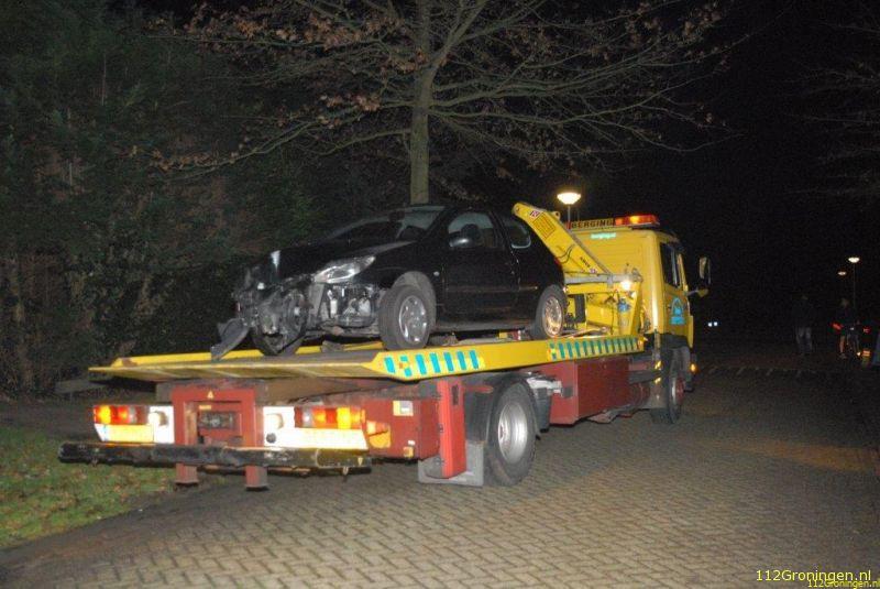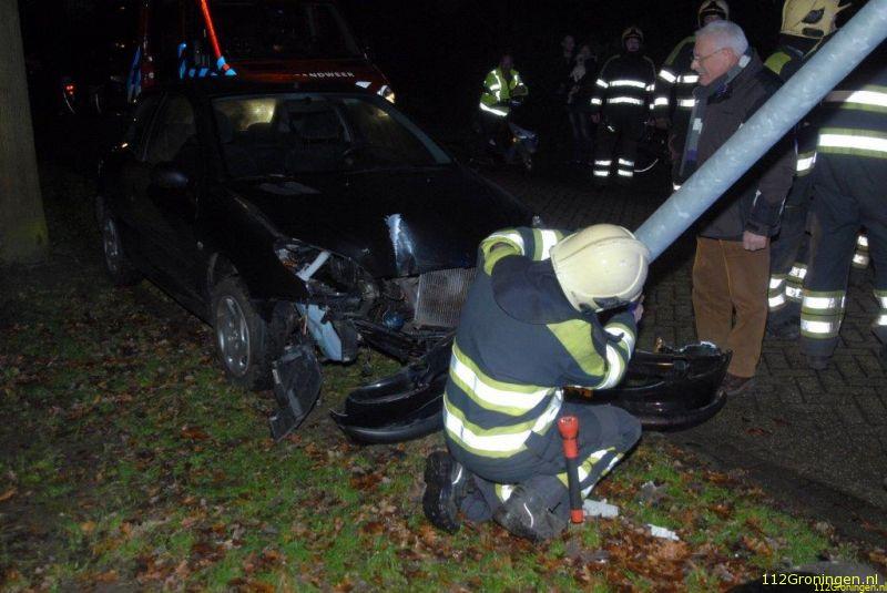 Hierdoor stuurde ze berm in en botste vervolgens tegen een lantaarnpaal. De auto werd hierbij zwaar beschadigd.