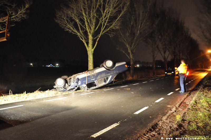 De man raakte door nog onbekende oorzaak van de weg en belande op de kop in een sloot. Het slachtoffer kon zelf de hulpdiensten bellen, maar wist niet precies waar hij was. Zo werd de brandweer van Zuidhorn onderweg gestuurd naar het Hoendiep bij Briltil. In Briltil werd niets aangetroffen. Na een zoekslag werd de auto gevonden langs de Hoofdstraat bij Oostwold.