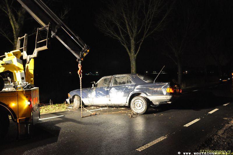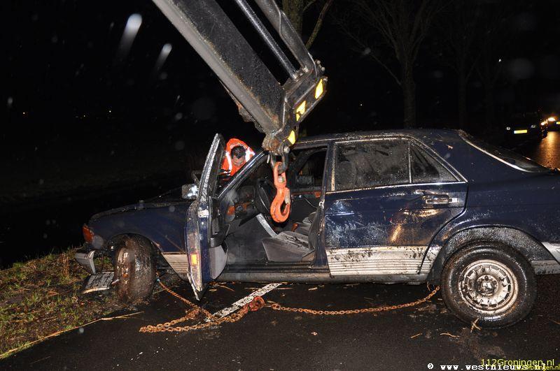 Intussen waren de hulpdiensten massaal uitgerukt, waaronder de brandweer van Zuidhorn, de duikers uit de stad, een ambulance en de Traumahelikopter. Het slachtoffer was goed aanspreekbaar en kon al vrij snel worden bevrijd door 2 omstanders. Hij werd met onbekende verwondingen overgebracht naar het ziekenhuis. De auto, een oldtimer Mercedes raakte totaal vernield en moest worden afgesleept.