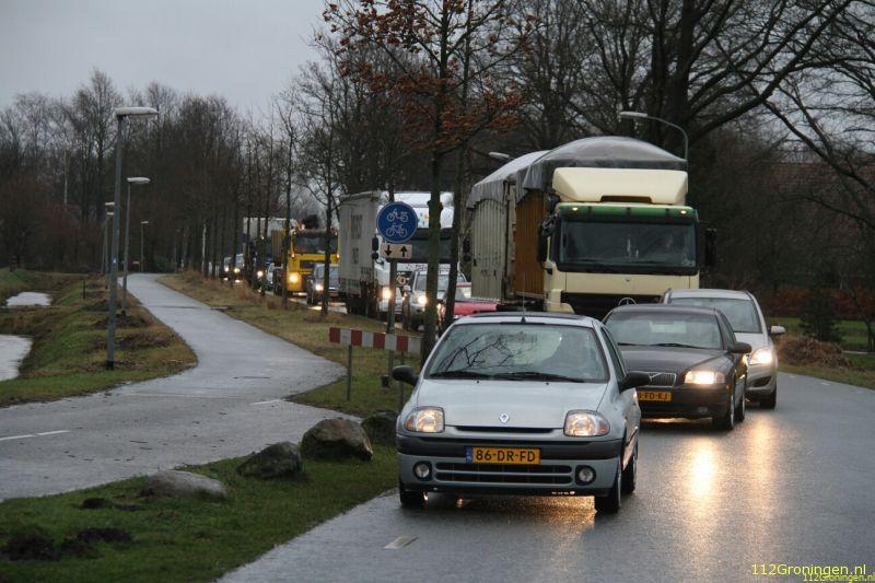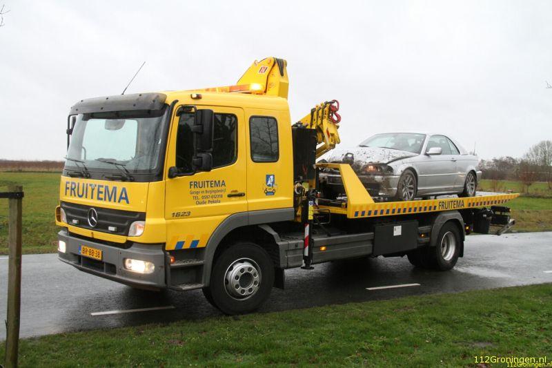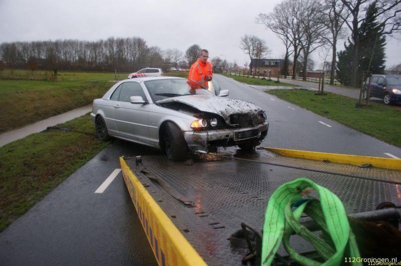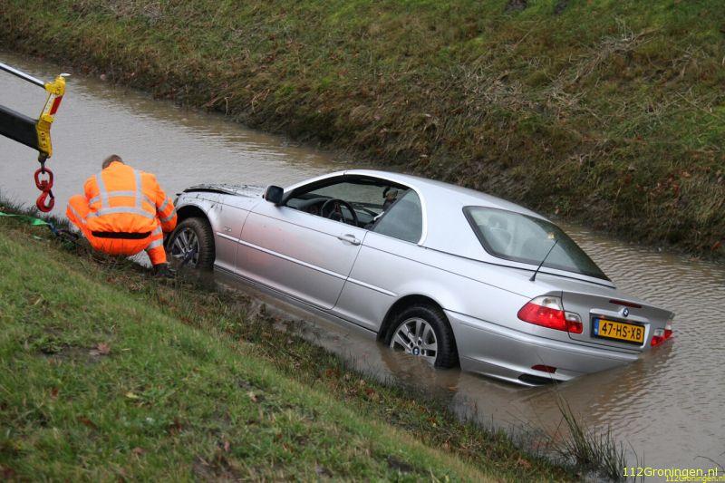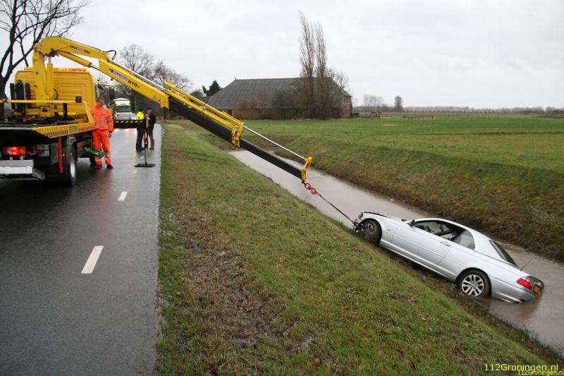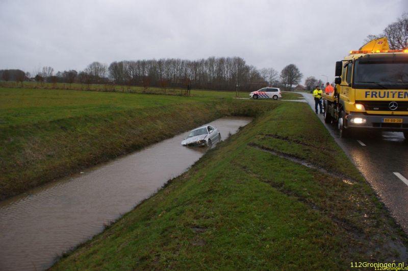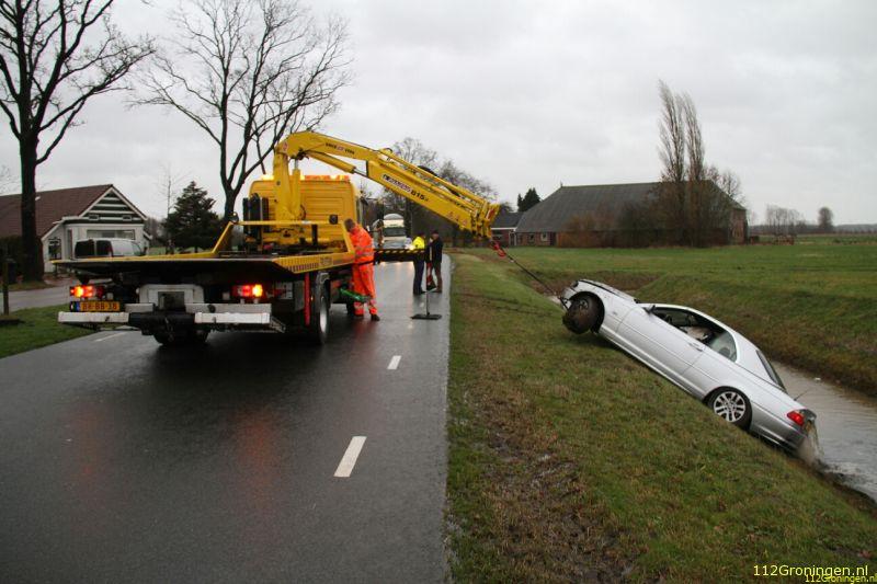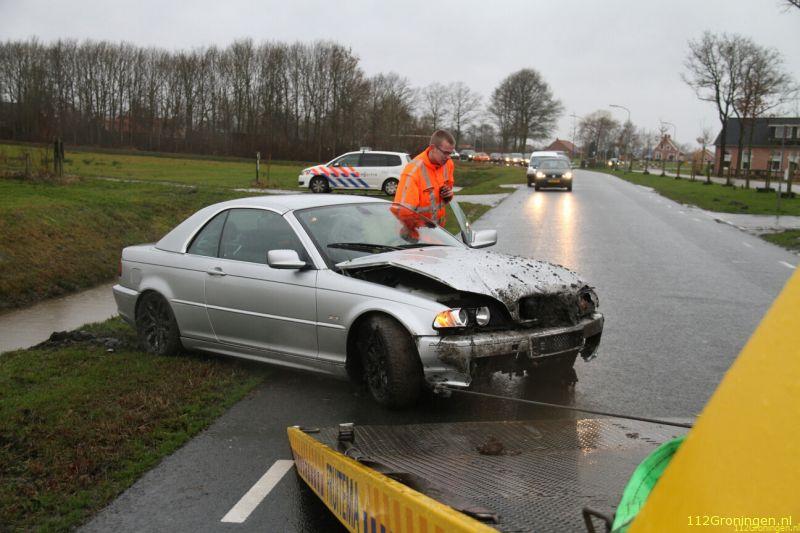 Een bestuurder van een BMW, komende vanuit de richting van Finsterwolde, raakte in de slip en verloor de macht over het stuur. De auto kwam in de sloot tot stilstand. De bestuurder is voor controle meegenomen naar het ziekenhuis van Winschoten. De weg was tijdelijk afgesloten voor al het verkeer.