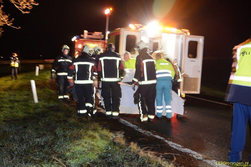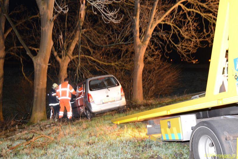 Ter plaatse trof men een auto aan die van de weg was geraakt en waar de bestuurster nog in zat. Zij gaf aan last van haar rug te hebben. De brandweer en het ambulancepersoneel hebben de vrouw uit haar auto gehaald, daarbij hoefde de brandweer de auto niet open te knippen. De bestuurster is overgebracht naar een ziekenhuis. Gladheid is waarschijnlijk de oorzaak geweest van het ongeval. Berger Hamstra uit Tynaarlo heeft de auto afgevoerd.