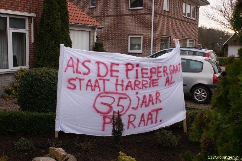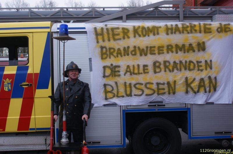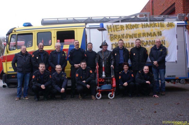 Finsterwolde - Maandagmiddag werd de Brandweer van Finsterwolde opgeroepen om op de kazerne te komen. Dit was een in scene gezette melding omdat, brandweerman Harrie Buiter woensdag 1 Januari 2014 namelijk al 35 jaar actief is bij de Brandweer van Finsterwolde.