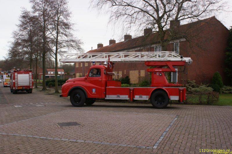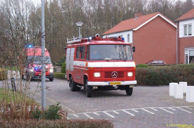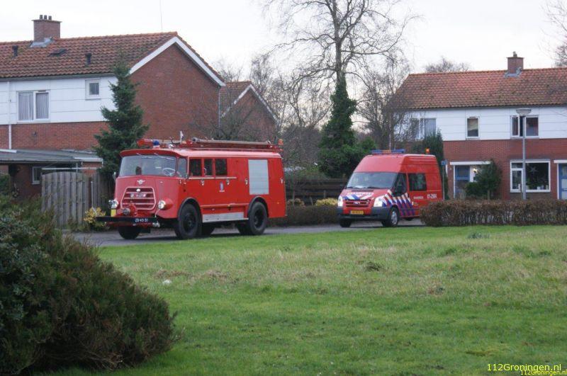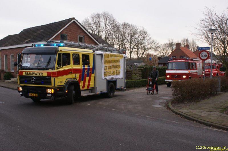 Na dat zijn pager was afgegaan werd hij door 5 brandweervoertuigen klem gereden bij zijn woning. Vanaf daar moest hij achter een Brandweerrollator met sirene en zwaailamp door Finsterwolde lopen wat natuurlijk veel bekijks opleverde.