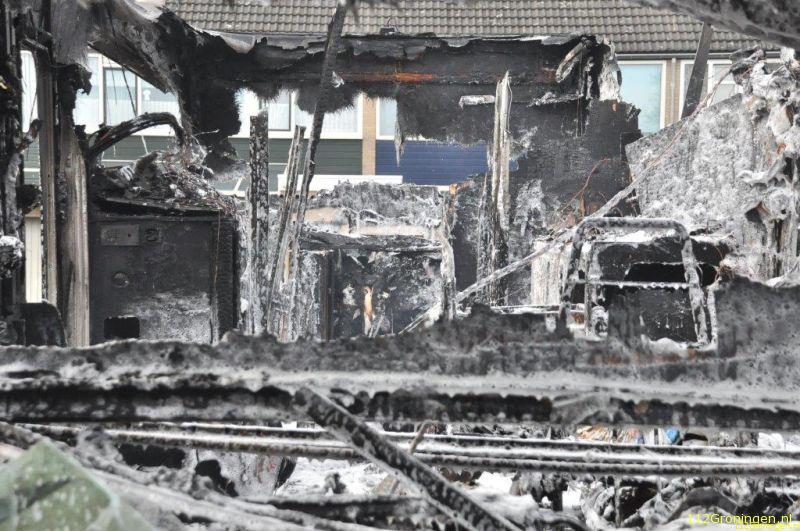 Hoogkerk - Een camper die in een loods van Berger Poort in Hoogkerk stond is helemaal uitgebrand.