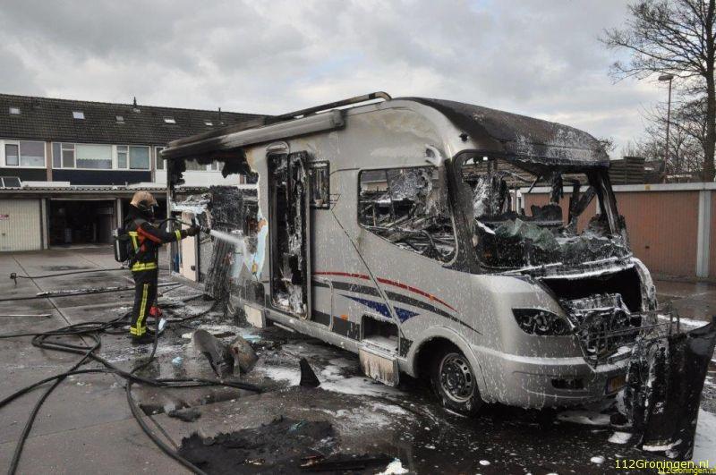 De brandweer rukte met twee wagens uit, maar kon niet voorkomen dat de camper totaal werd vernield. Hoe het vuur precies is ontstaan en hoe hoog de schade is, is nog niet bekend.(tekst : oogtv.nl)