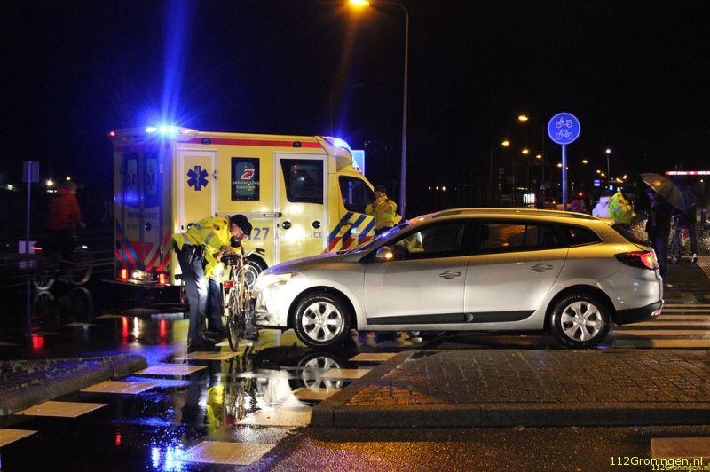 De vrouw werd in een ambulance onderzocht, maar bleek geen letsel te hebben. De bestuurder van de auto kon, nadat de politie het ongeval in kaart had gebracht, zijn weg vervolgen. De politieauto is door agenten van de verkeersongevallen analyse los getrokken.