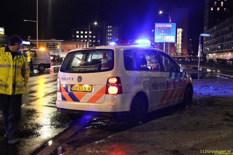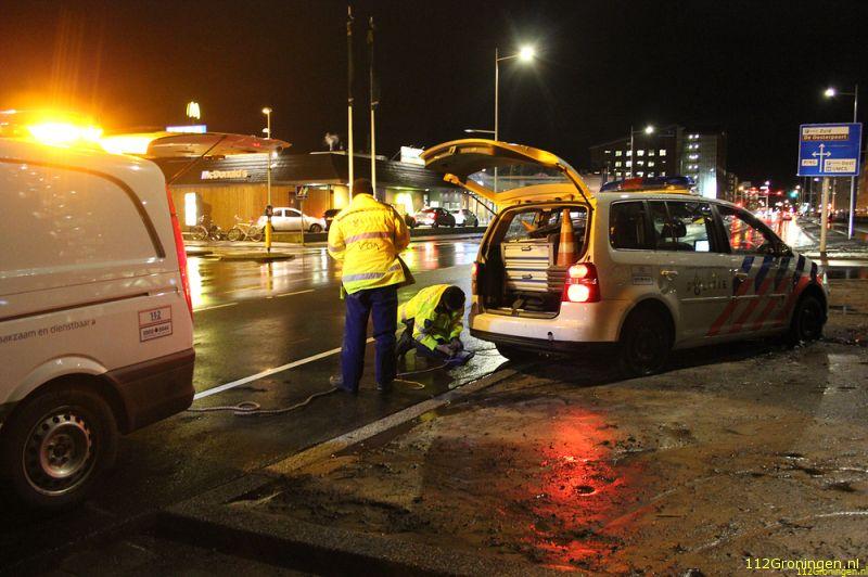 Groningen - Bij een ongeval op de Sontweg in Groningen is dinsdag aan het eind van de middag een politieauto vast komen te zitten in de modder.