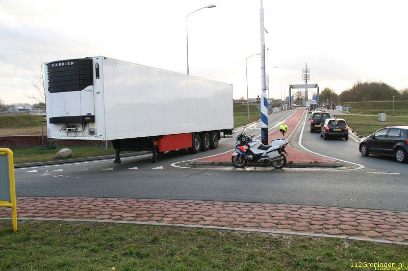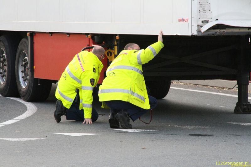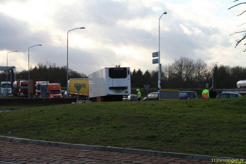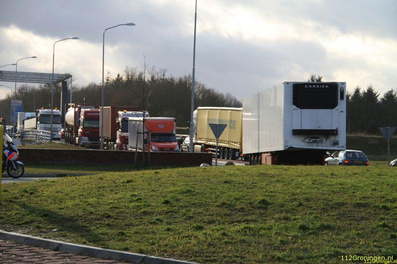 Winschoten - Vanuit Winschoten kon men tussen 13:45 uur en 15:10 uur niet meer op de A7 komen, omdat bij de Blauwe Roos een kapotte trailer midden op de rijbaan stond.