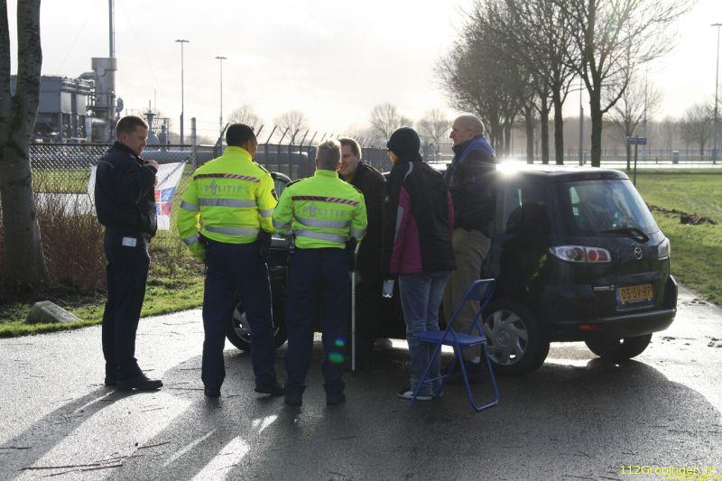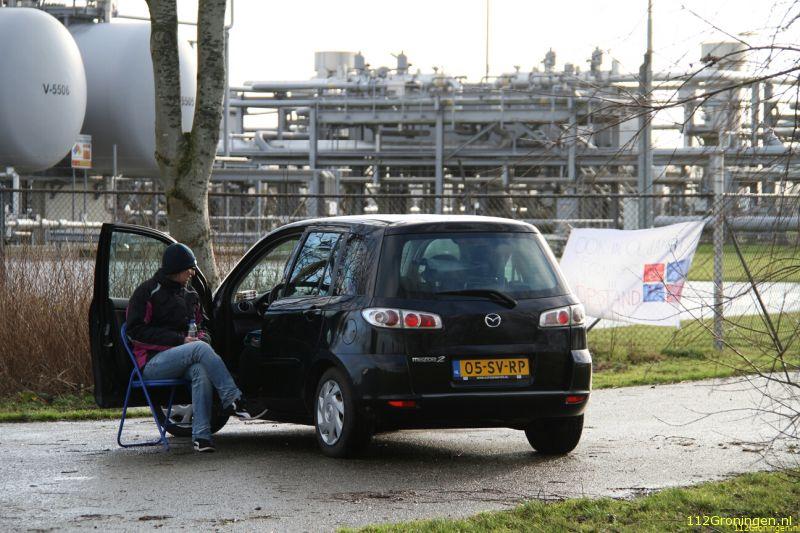 Scheemda - Twee leden van de actiegroep Groningers in Opstand hebben maandagmorgen een NAM-locatie in Scheemda bezet.