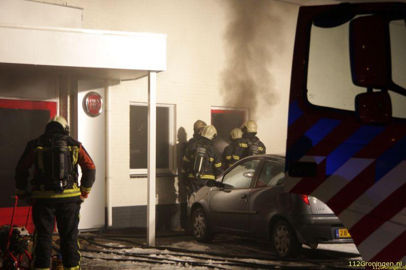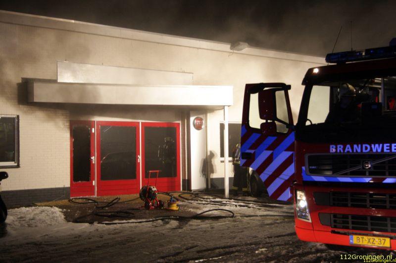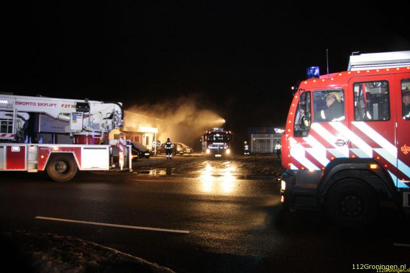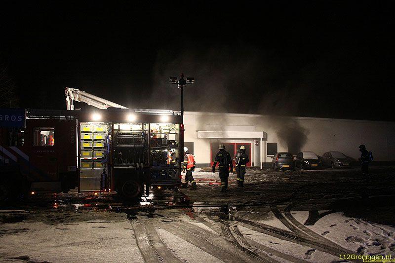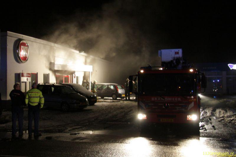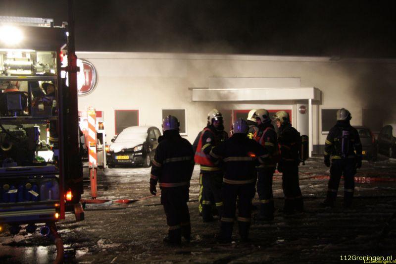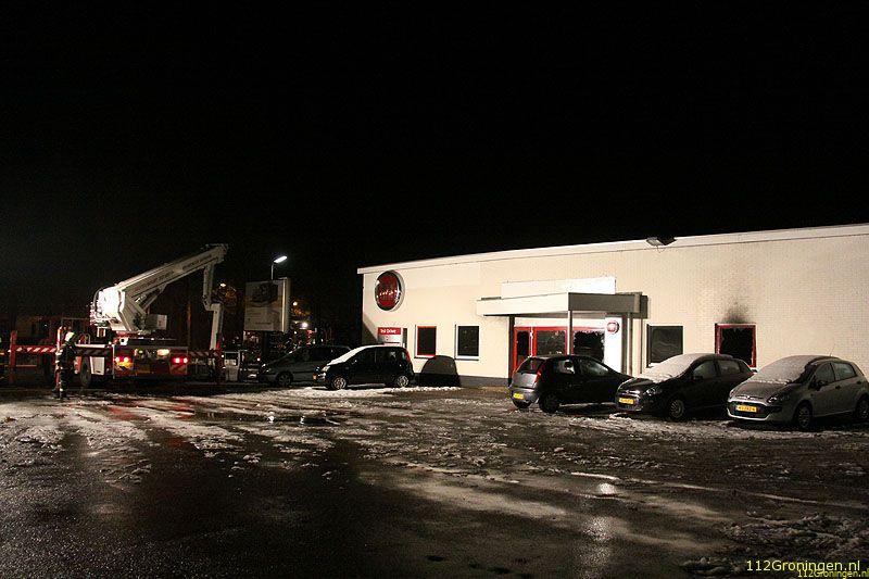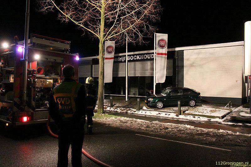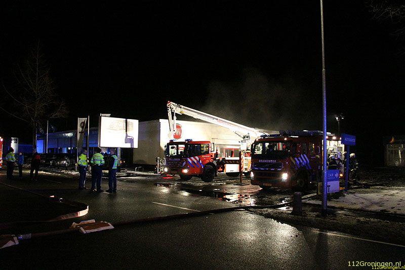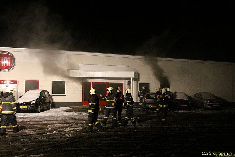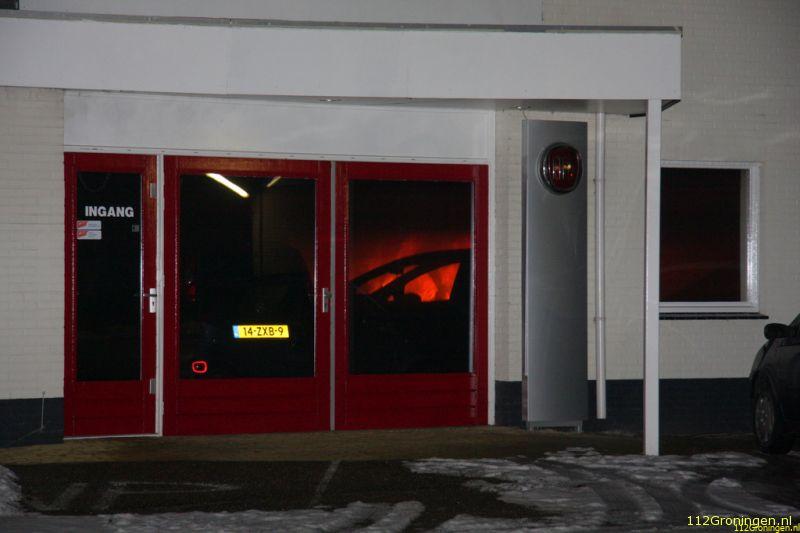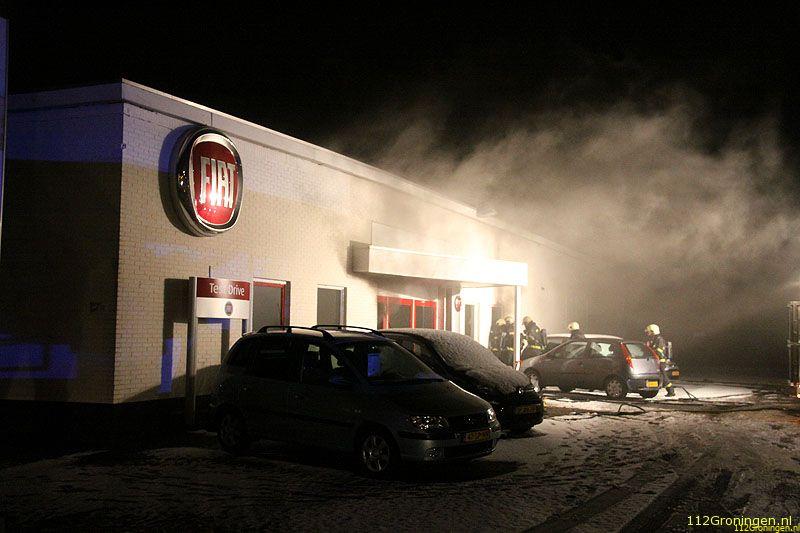 Veendam - De showroom van een autodealer aan de Lloydsweg in Veendam is in de nacht van maandag op dinsdag flink beschadigd geraakt door een brand.