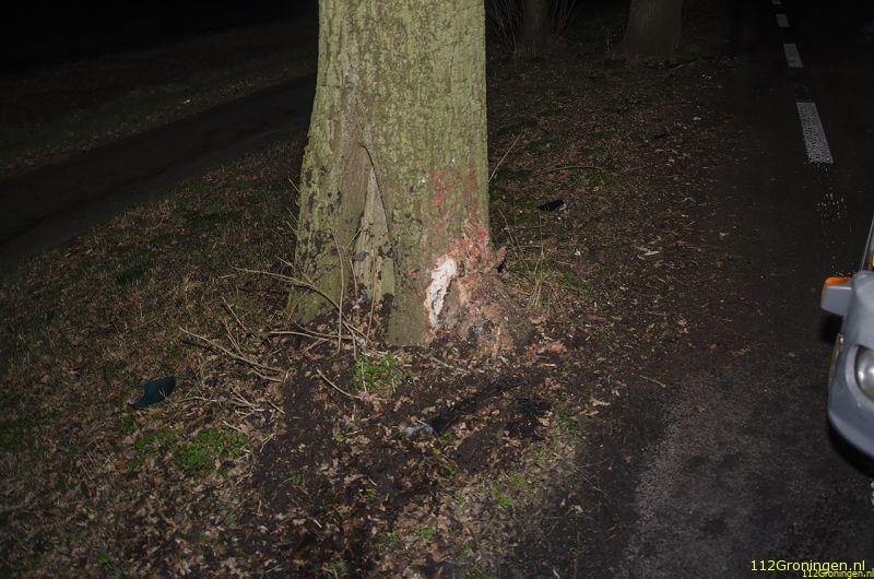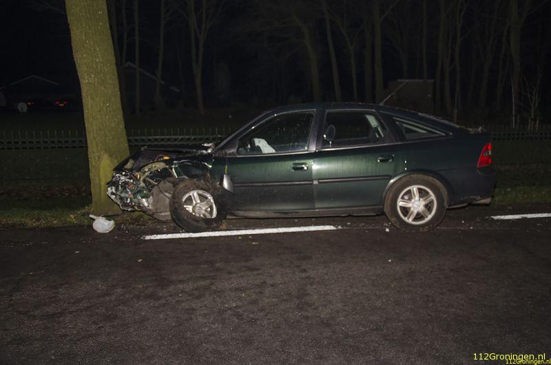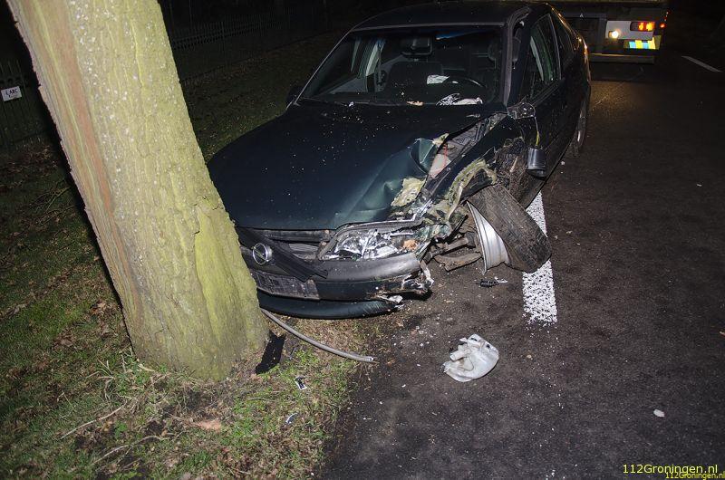 De automobilist die in de richting van Marum reed, raakte door nog onbekende oorzaak aan de linkerkant van de weg eerst twee bomen, om vervolgens tegen een derde boom aan de rechterkant tot stilstand te komen.