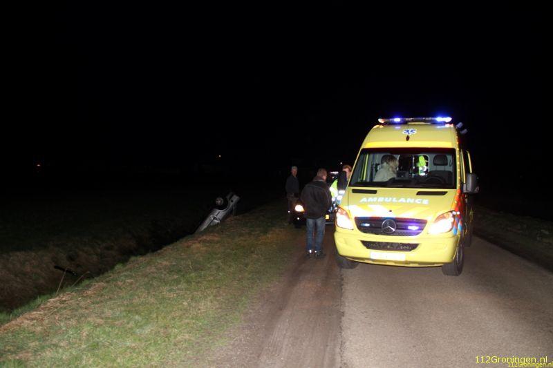 De man, komende vanuit Scheemda, verloor door nog onbekende oorzaak de macht over het stuur en belandde met zijn auto op de kop in de sloot. Voorbijgangers belden de alarmcentrale waarna de politie en ambulance ter plaatse kwamen.