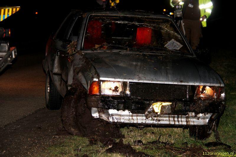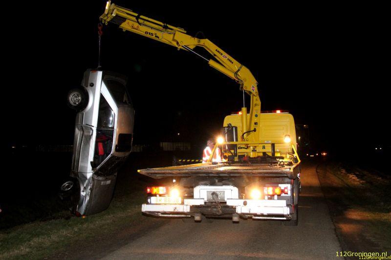 De man is voor onderzoek meegenomen naar het ziekenhuis in Winschoten. Berger Fruitema sleepte het voertuig af.
