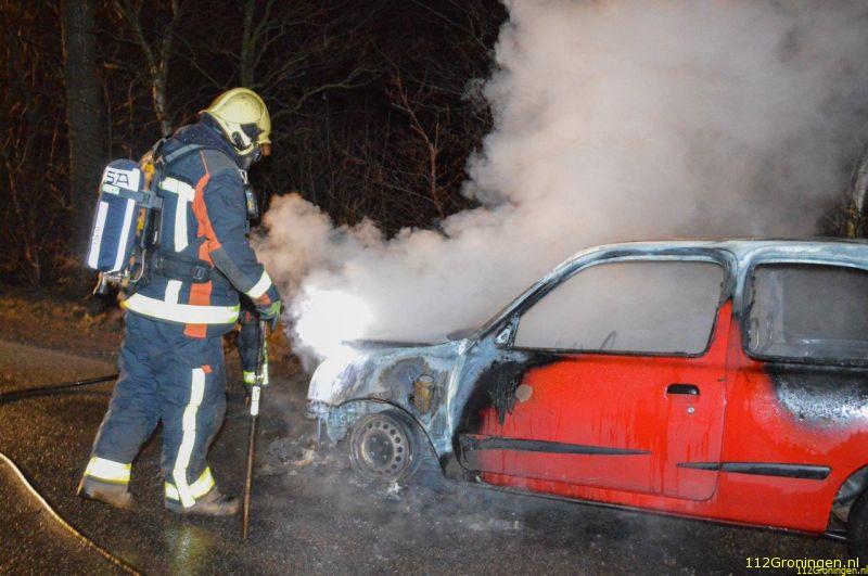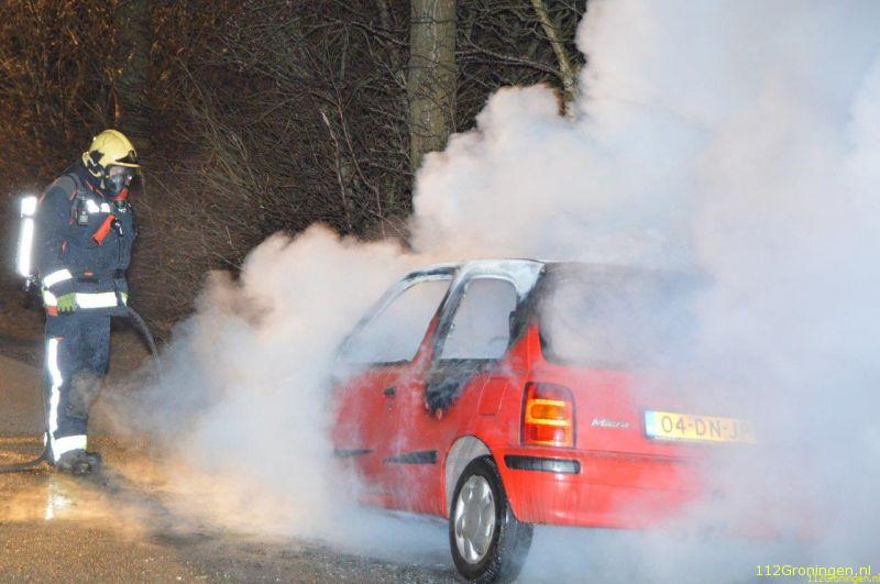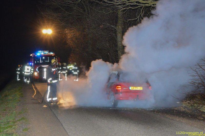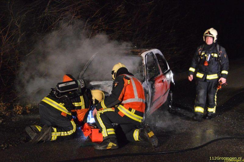 Terwijl zij aan aanrijdend waren was de autobrand al te zien en bleek deze op de Wedderweg in Oude Pekela te zijn (verlengde van de Oerdeweg). Tijdens het rijden kwam er rook onder de motorkap vandaan waarna de bestuurder zijn auto aan de kant zette. De brandweer had het vuur snel uit, maar kon niet voorkomen dat de auto volledig uitbrandde.