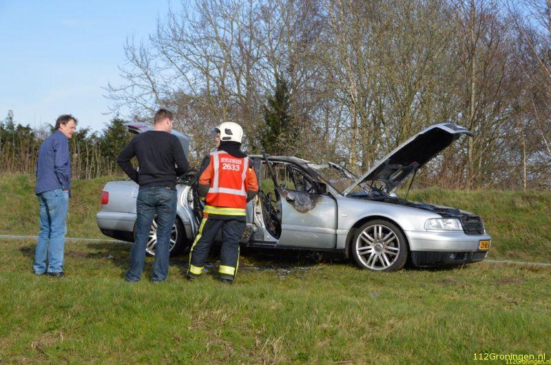 Toen de brandweer aankwam stond de auto al volledig in de brand en was er voor de brandweer niets meer te redden. De bestuurder kon de auto nog in de berm zetten nadat de brand werd ontdekt zodat de inzittende het voertuig veilig konden verlaten. Hoe de brand heeft kunnen ontstaan is niet bekend. Bergingsbedrijf Willem Keizer heeft de volledig uitgebrand auto afgesleept.