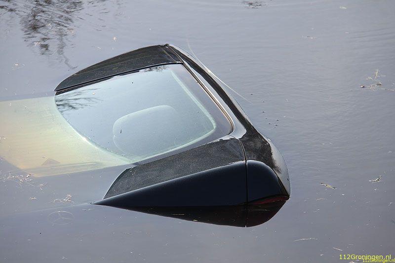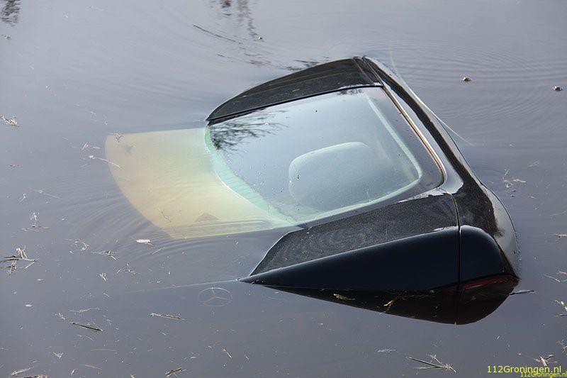 Beide bestuurders kwamen met de schrik vrij, een bergingsbedrijf heeft de auto uit het water gehaald.