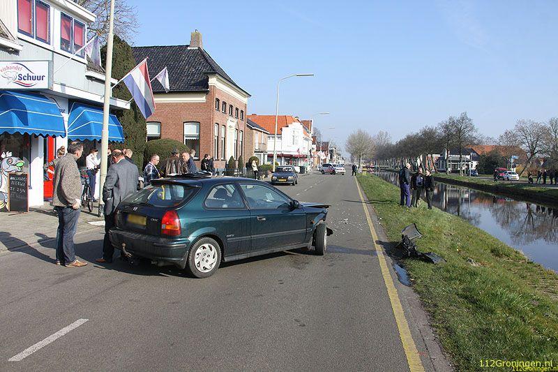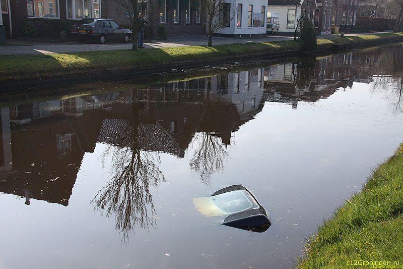 Wildervank - Bij een ongeval op de Poststraat in Wildervank is donderdagochtend een auto te water geraakt. Door een nog onbekende oorzaak botste twee auto's op elkaar, waarbij één van de twee auto's in het water tot stilstand kwam.