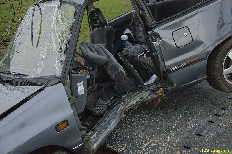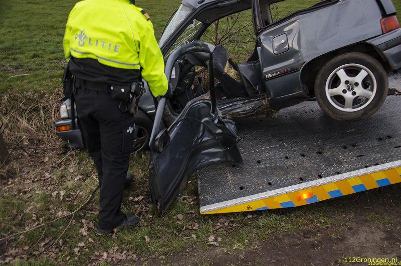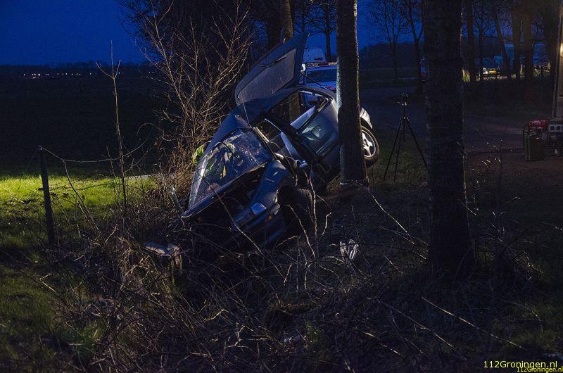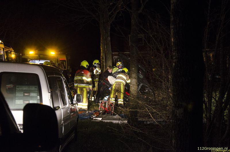 De 22-jarige bestuurder uit Roden raakte door nog onbekende oorzaak de controle over de auto kwijt en botste tegen een boom. Hij raakte gewond, net als zijn twee mede-inzittenden, een 21-jarige man uit Roden en een 25-jarige man uit Peize.